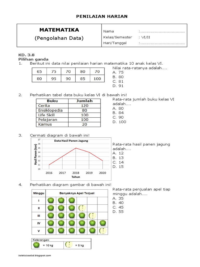 Jumlah soal uraian. Soal Pengolahan Data Kelas 6 Semester 1. Kali ini Admin ingin membagikan Link Download Soal Matematika Kelas 6 SD Bab 7 Pengolahan Data dan Kunci Jawabannya yang dapat didownload dengan mudah dengan sekali klik.